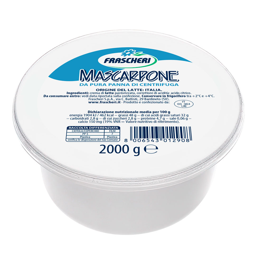 Il mascarpone Frascheri è un delizioso formaggio realizzato secondo tradizione. Molle, spalmabile, non stagionato, ottenuto per coagulazione acido-termica della migliore crema di latte.